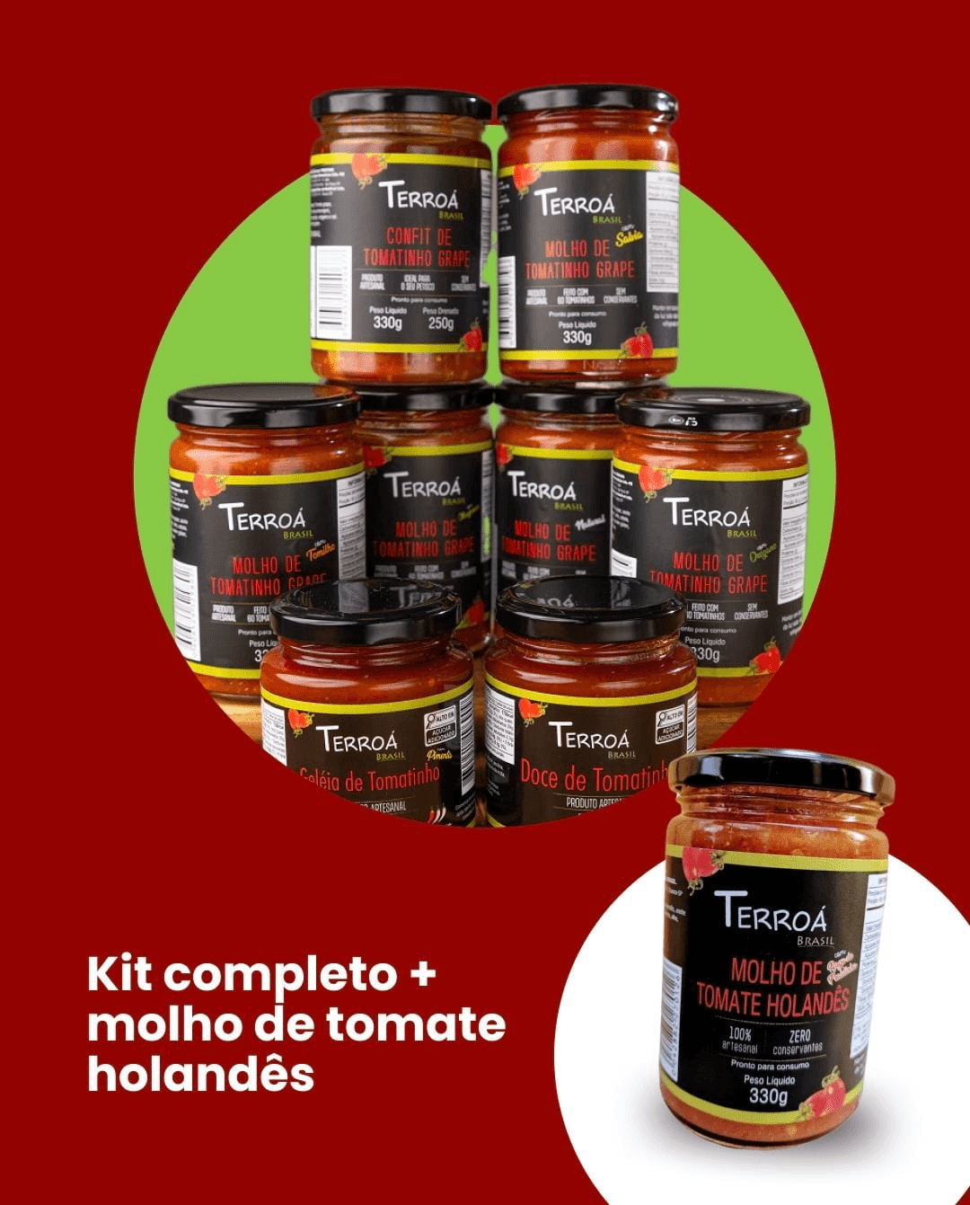 Kit completo Terroá são 9 produtos com tomates especiais, sem conservantes, que unem praticidade, saúde e muito sabor. Tudo o que você precisa para transformar sua cozinha com o melhor da nossa linha todos os dias.